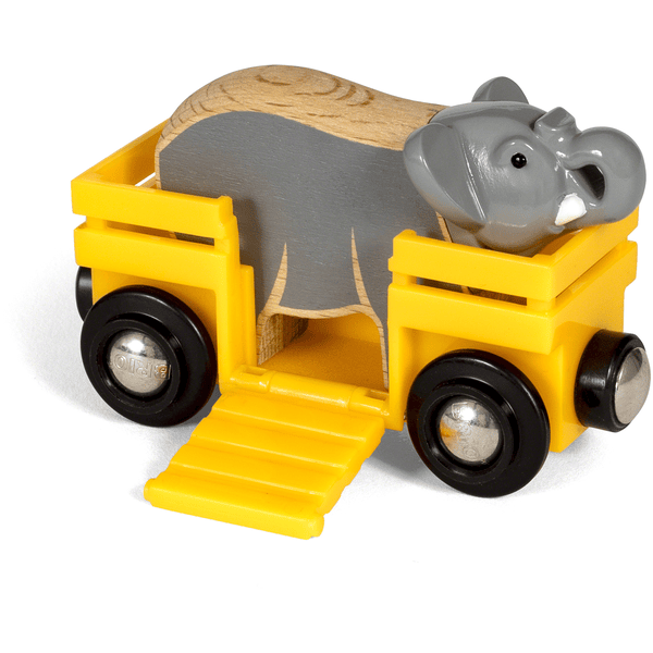 Der Elefant im Waggon lässt sich an jeden Zug der BRIO World ankoppeln und