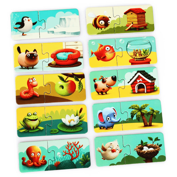 - Das Set besteht aus 10 Mini-Puzzlen mit jeweils 2 Teilen die zusammengehören, wodurch dein Kind viele Tiere kennenlernt