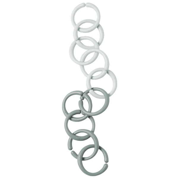 Kinderwagenkette – die Ringe sind ruckzuck am Kinderwagen, Gitterbett und der