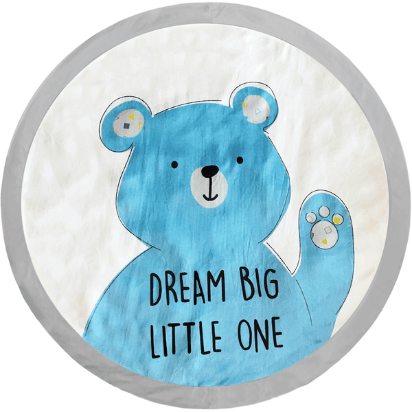 Dieser super weiche wendbare DREAMgro Playmat Blue Bear beidseitiger Plüsch-Spielteppich in den Maßen 90 x 90 cm