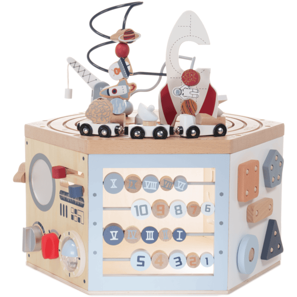 - Ausgestattet mit einem Weltraumlabyrinth, einer Kosmos-Motorikschleife, einem Abakus und vielem mehr kann dein Kind die unendlichen Weiten des Universums erkunden und dabei seine Hand-Augen-Koordination und Feinmotorik verbessern