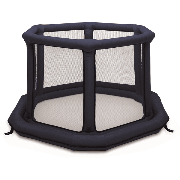 MonatenAlter: ab 6 Monaten Abmessung: 140cm x 140cm x76cm Farbe: blau Gewicht: 2,8 kg Geeignet für Indoor und Outdoor (wasserfest) Lieferumfang: 1x Laufstall, 1x Handpumpe, 1x Umhängetasche Zeit zum Aufblasen: 1-3 Minuten
