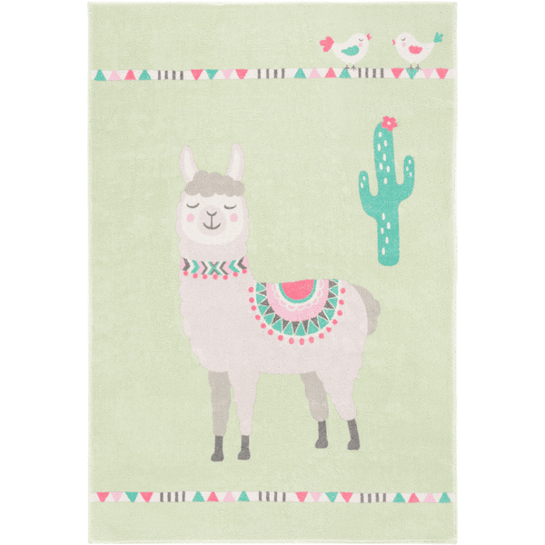 Der Kinderteppich Lama ist ein absolutes Muss in jedem Kinderzimmer. Der Webteppich ist in einem pastilligem Ton gehalten und besitzt verschiedene kleine Ornamente und Motive. Durch seinen weichen Flor eignet sich der Teppich perfekt als Spielunterlage im Kinderzimmer. Das in dem Teppich verarbeitete Material macht ihn strapazierfähig und wärmedurchlässig für eine Fußbodenheizung.Die Gesamtgröße des Teppichs beträgt 170 x 120 x 1,2 cm (L x B x H)