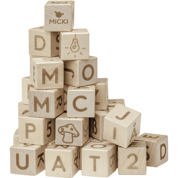 Üben Sie erste Wörter! - Mickis Premium-Sortiment ist aus verschiedenen Holzarten gefertigt –