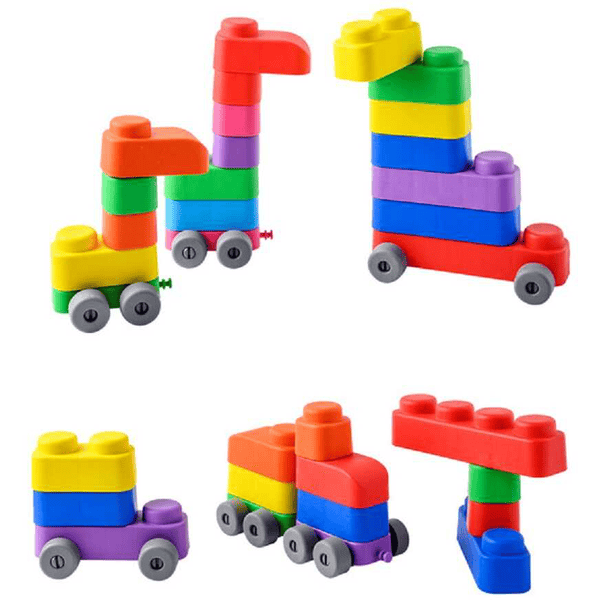 Weiche Blöcke aus Bio-Material mit Silberionen für zusätzliche Kindersicherheit. Das Set besteht aus 10 Blöcken und 8 Rädern. Kleinkinder können sie wie einen Beißring verwenden, ohne dass das Zahnfleisch beschädigt wird. Entwickelt die Kreativität, Motorik, Hand-Augen-Koordination. Bauen Sie alles, was Sie wollen – Türme, Roboter, Tiere und sogar Fahrzeuge, indem Sie die Räder hinzufügen.Sicher spielen:Kuscheltiere für Babys und Kleinkinder bestehen aus ultraweichem, lebensmittelechtem Material, das mit Silberionen behandelt wurde, um seine hygienischen Eigenschaften zu maximieren. Sie sind flexibel und drückbar. Kinder können sie werfen, stapeln und sogar sicher und leise kauen. Sie sind perfekte Zahnungsspielzeuge, weil sie winzigen Zahnfleisch nicht verletzen.Räder für mehr Spaß:Unser Set aus Stapelklötzen und Kuscheltieren für Babys enthält Räder. Jetzt kann Ihr Kind auch eine ganze bunte Flotte von Spielzeugfahrzeugen oder eine Regenbogenlokomotive bauen. Die quetschbaren Steine werden an den Rädern befestigt und die Fahrzeugkarosserien können einfach ausgetauscht werden.Spielend lernen:Babyspielzeug-Weichblöcke sind einfach und machen Spaß, sie zu bauen und umzuwerfen. Diese farbenfrohen Blöcke fördern müheloses Lernen, indem sie sprachliche und feinmotorische Fähigkeiten sowie die Auge-Hand-Koordination entwickeln.Mehrzweck:Verwenden Sie unsere Bausteine für 2-Jährige als Sandspielzeug, Badespielzeug, Eisformen oder sogar Backformen. Unsere leichten, lebendigen, kompakten Bauklötze und zusammendrückbaren Autos für 2-Jährige werden Kinder jederzeit und überall glücklich beschäftigen.Wunderschön und günstig:Diese schönen Konstruktionsspielzeuge werden kleine Kinder begeistern. Verschenken Sie Stapelblöcke für Babys zu Geburtstagen, Weihnachten, saisonalen Feiertagen, Treffen oder ungeplanten Überraschungen.Größe:25 x 18 x 8 cmMaterialBio-Material mit Silberionen