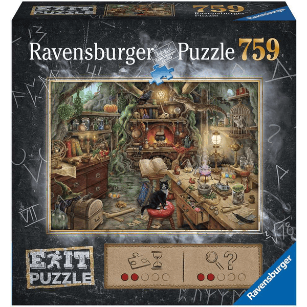 EXIT Puzzle von Ravensburger! Puzzeln, Rätseln, Lösen. Gelingt es, die Puzzleteile an ihren Platz zu legen, die Rätsel zu finden und sie mit zu knacken? Verschiedene Schwierigkeitslevel der Puzzles sowie zwei unterschiedliche Teilezahlen innerhalb der EXIT Reihe garantieren abwechslungsreiches Puzzle- und Rätselvergnügen! In der Schachtel befindet sich ein Puzzle mit 759 geheimnisvollen Teilen, eine Anleitung und einen Umschlag welcher die Lösung beinhaltet.Jetzt gibt es das Konzept der EXIT Rooms auch als Ravensburger Puzzle! Frei nach dem Motto: Puzzeln, Rätseln, Lösen. Gelingt es, die vielen Puzzleteile an ihren Platz zu legen, alle Rätsel zu finden und sie mit hinreichender Kombinationsgabe zu knacken? Eine spannende Geschichte lässt Puzzler und Spieler in die geheimnisumwobene Welt des EXIT Puzzles eintauchen, in der es den EXIT zu finden gilt! Gelingt dies, kann man mit Stolz behaupten seine Mission mit Bravour gemeistert zu haben. Verschiedene Schwierigkeitslevel der Puzzles sowie zwei unterschiedliche Teilezahlen innerhalb der EXIT Reihe Puzzles garantieren dabei abwechslungsreiches Puzzle- und Rätselvergnügen! In der Schachtel befindet sich ein Puzzle mit 759 geheimnisvollen Teilen, eine Anleitung mit einer mysteriösen Geschichte und einen Umschlag welcher die Lösung beinhaltet.