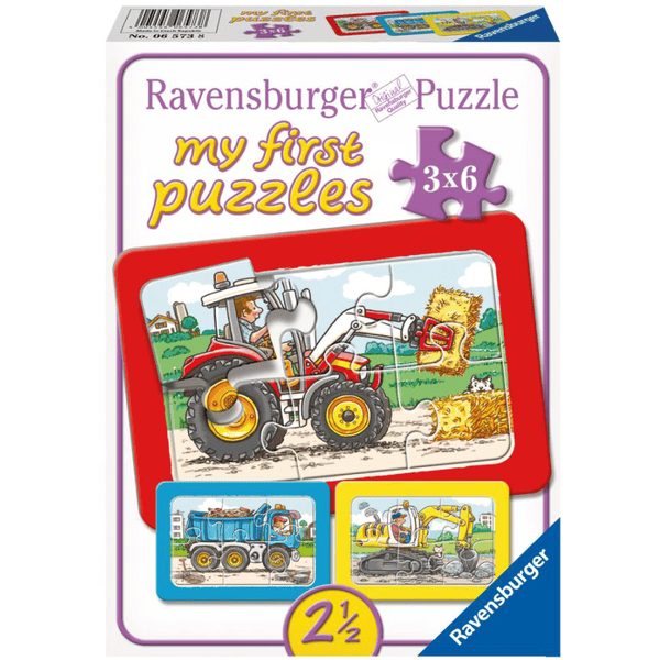 Ravensburger My first Puzzle – Rahmenpuzzle Bagger, Traktor und Kipplader, 3×6 Teile