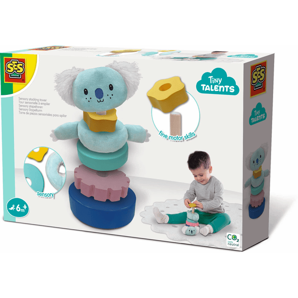 - Inhalt: Stapelturm mit Stapeltieren aus Holz, Plüsch und Schaumstoff