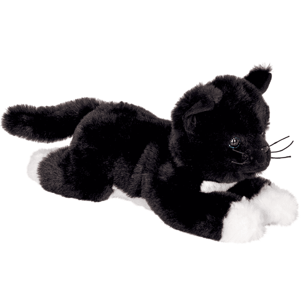 - Das kuschelweiche Kätzchen hat schwarzes Fell, weiße Pfötchen und ist bereit für neue Abenteuer im Kinderzimmer