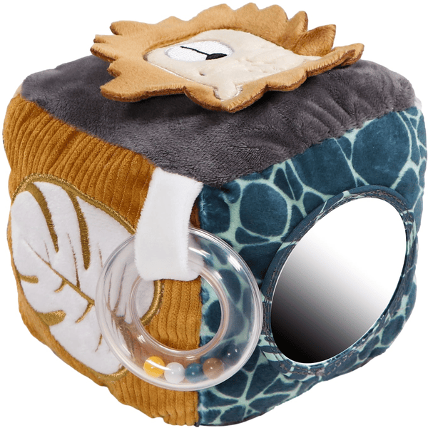- Zum Beispiel enthält der Würfel einen Spiegel, lose Beine des Affen, Etiketten, eine Rassel und die Mähne des Löwen kann gegriffen werden